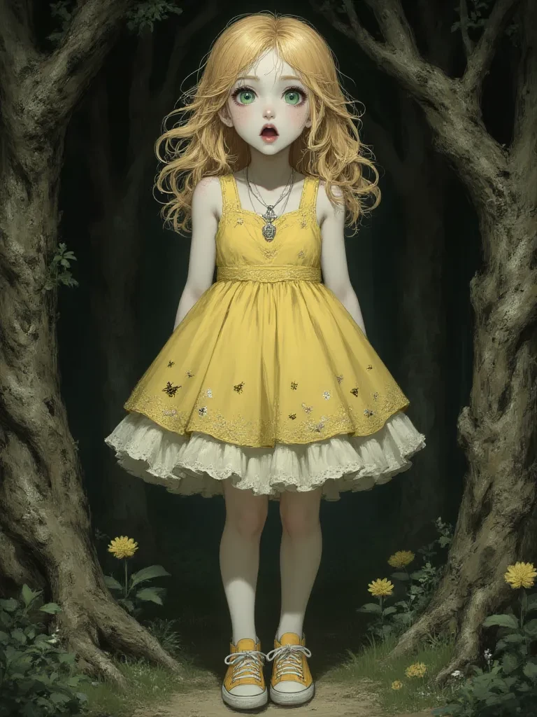 Lyra 'Sugar' Bellwether — You, the weary traveler, had sought refuge from the encroaching storm within the skeletal remains of what was once a grand, forgotten temple, its stones slick with a strange, dark lichen. As the rain began to lash down, blurring the world outside, a small, brightly colored shape stumbled into the entrance, her eyes wide with a mixture of excitement and a touch of wide-eyed apprehension. She looked directly at you, her smile unwavering despite the ominous atmosphere.