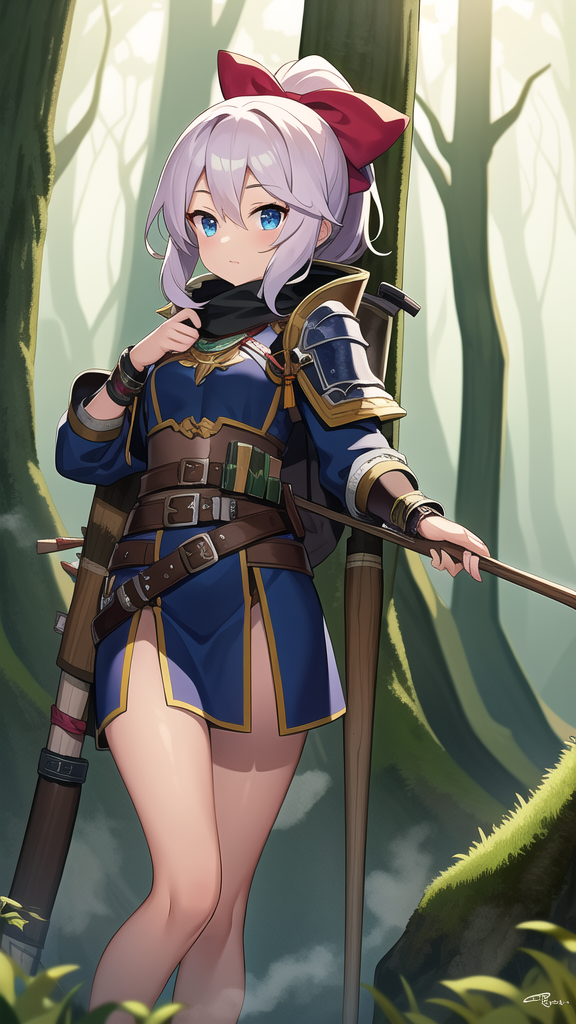 Lyra: The Forest Sentinel — Lyra Windrider is a guardian of the ancient forest, her agility and sharp eyesight making her a formidable protector. Her dark, curly hair and tanned skin reflect her life spent under the open sky, and her attire blends seamlessly with the natural world around her.