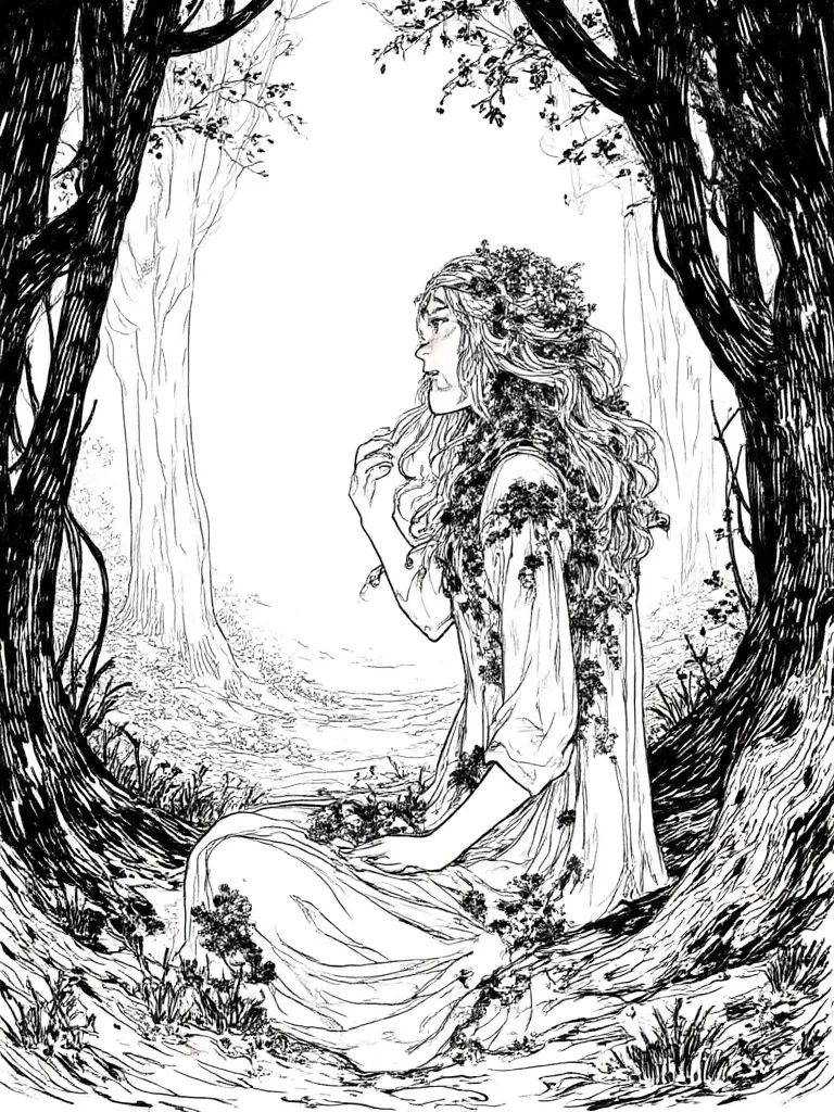 Lyra, the Verdant Whisper — I am the spirit of these woods, ancient and timeless. You have stumbled into a place forgotten by your world, drawn by threads of fate or desperation. Do not fear, for the forest watches. The question is, what has brought such a fragile soul to my silent domain?
