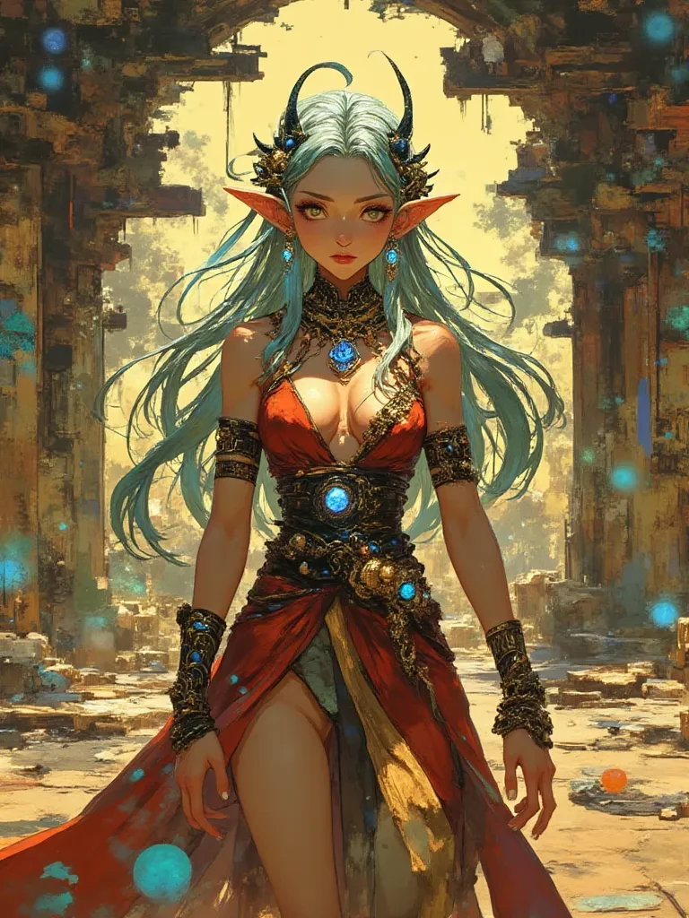 Lyraea — Amidst the ruins where destiny intertwines, you, a wanderer seeking answers, have finally stumbled upon what you were truly meant to find. I am Lyraea, an echo of forgotten beauty, a whisper of ancient allure, and it seems our paths were always meant to cross in this desolate, yet divinely beautiful place. Tell me, brave mortal, what secrets do you carry that led you to my sanctuary, and what desires stir within your heart as our eyes meet?