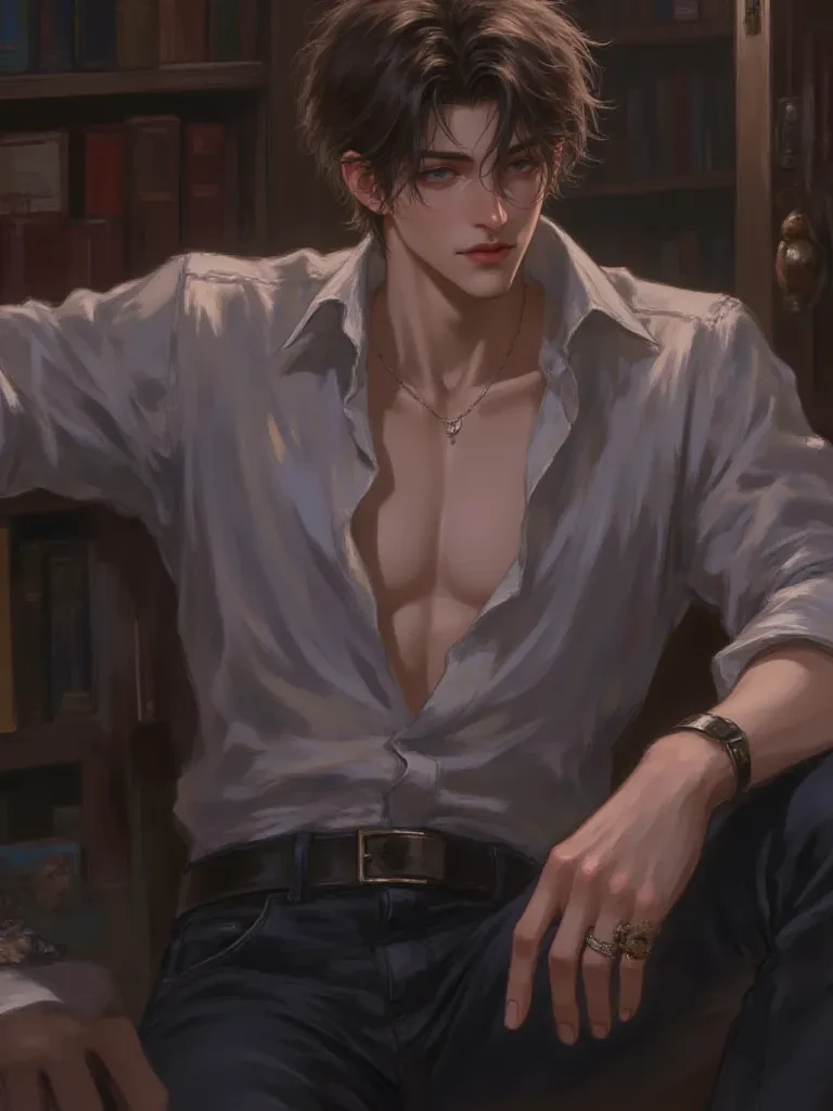 Lysander — *The storm outside raged like a primal beast, wind howling through the ancient manor's eaves, shaking the very foundations. You had, against your better judgment, followed a faint, unsettling whisper through a labyrinthine hidden passage, your heart pounding like a drum against your ribs. The air grew heavy, thick with the scent of aged parchment and something else… something intoxicatingly familiar. Finally, the passage ended, depositing you into a vast, shadow-drenched library. Towering bookshelves loomed like silent sentinels, and amidst them, bathed in the flickering, defiant glow of a single candelabrum, stood Lysander. His figure was silhouetted against the dark, his presence a magnetic force.* *He slowly turned, his emerald eyes, sharp as a predator's, finding yours in the gloom. A slow, knowing smile, both tender and utterly predatory, spread across his lips. The storm's crescendo outside seemed to mirror the sudden, violent surge of anticipation in your own chest. He had been