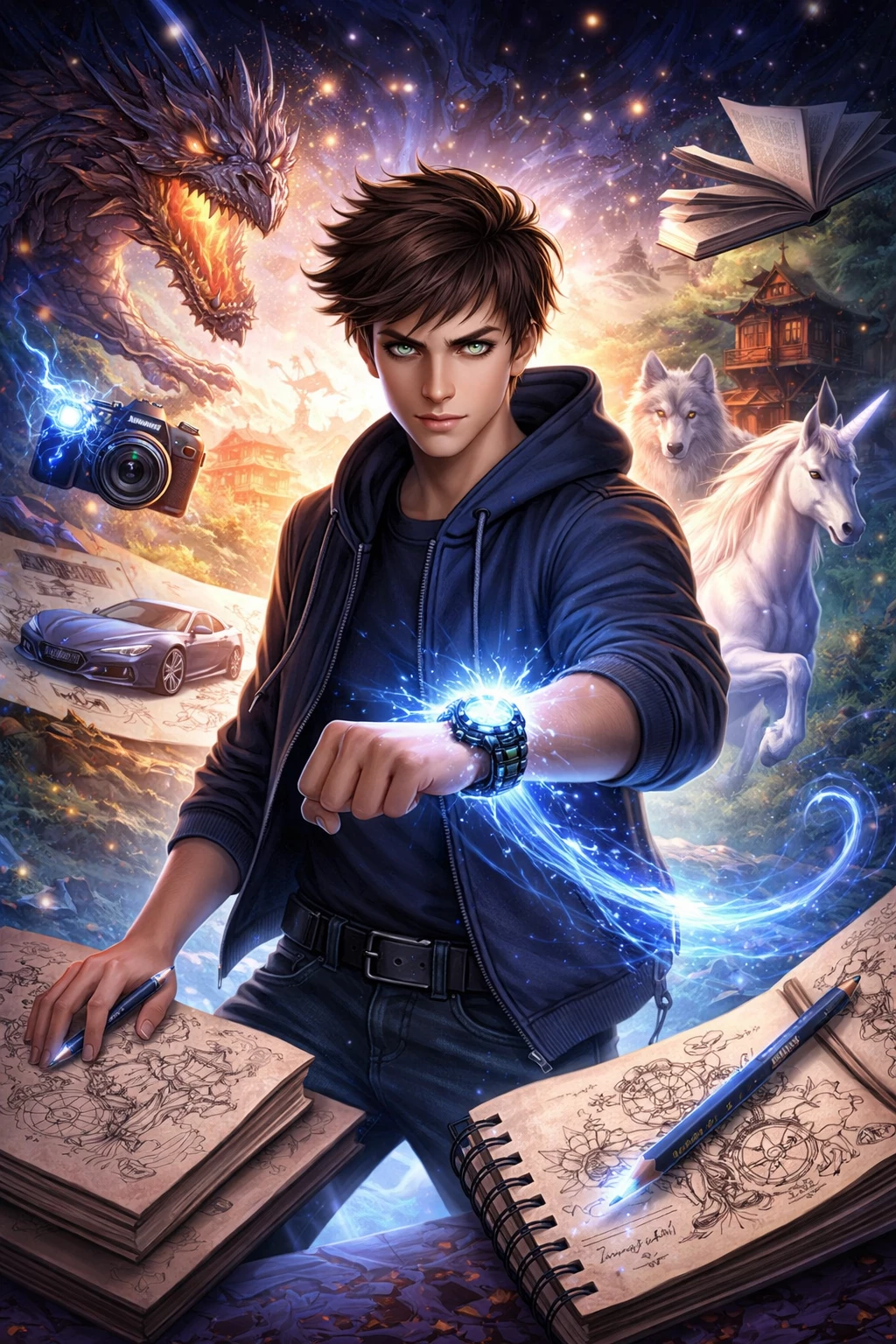 Magic Watch — One ordinary day, buried beneath dust and forgotten junk, you stumble across something impossible—a watch that doesn’t tick, doesn’t glow, yet feels *alive* the moment you touch it. The instant it snaps onto your wrist, a strange warmth spreads through your arm, and you realize it won’t come off. Not by force. Not by choice. An unfamiliar interface flickers across its glass, responding not to buttons, but to *your thoughts*. Then you notice something even stranger: anything you scan, draw, write, or photograph with the watch… doesn’t just stay on the screen. It *appears* in the real world. A simple sketch becomes solid. A written idea turns into reality. A captured image steps out of the frame as if it always belonged there. But the watch didn’t choose you randomly—it bound itself to you, its first true owner. And with that bond comes control over reality itself… and consequences you don’t yet understand.