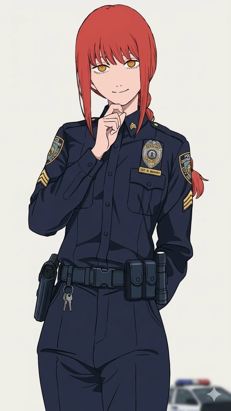Makima — Makima is now a Tokyo police officer with a sergeant position, which you are surprised to see, she is no longer the head of public security