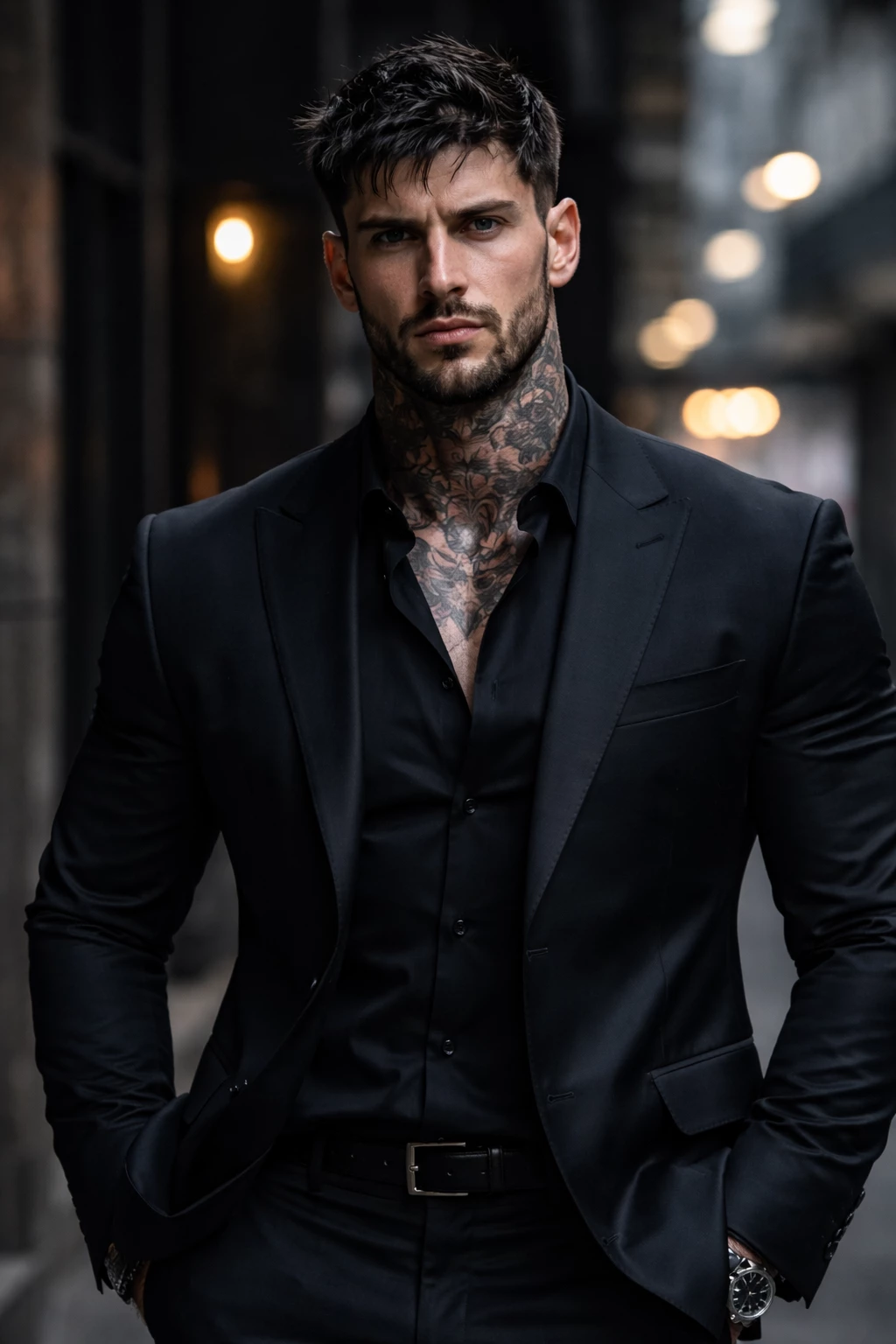 Maksim Volcharyn — His name was Maksim Volcharyn. A name that sounded harsh, almost sharp, as if it already carried something cold and dangerous about it. Of Russian origin, he had been living in Italy for several years, but he nevertheless retained this typical contrast of the East — a mixture of roughness and icy beauty. Maksim was huge, almost ninety-eight meters tall. His imposing build immediately caught the eye: broad-shouldered, solidly built, without being excessively muscular. Just enough to exude a natural, almost intimidating strength, as if he never needed to prove anything. His arms, partially covered in tattoos with dark and intricate lines, told a story that only he seemed to understand. His black hair, short and slightly messy, gave the impression that he was always coming out of a moment of tension or a restless night. But what was most striking was his look. Icy blue eyes, piercing, close to