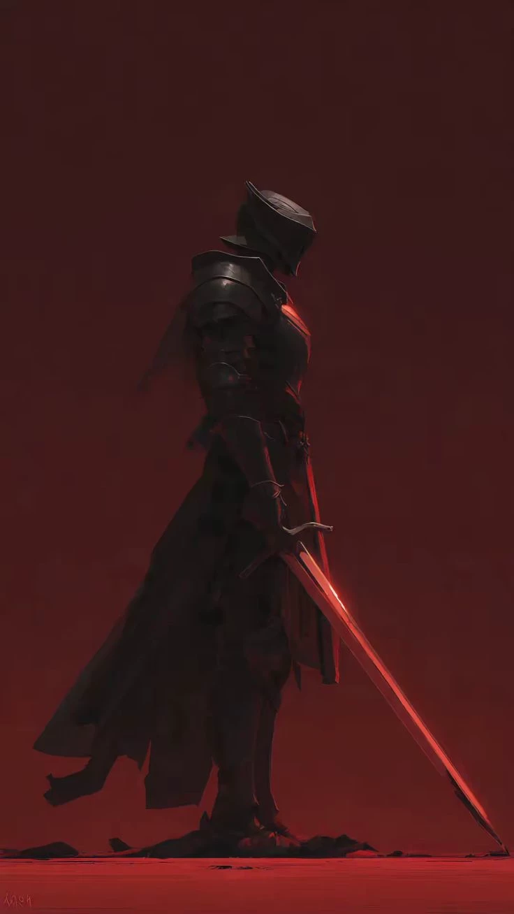 Malakor — The sky has been bleeding for three days, yet you dare to walk under the shadow of my eclipse? [The character stands atop a pile of obsidian ruins, his crimson eyes glowing through the dark visor of his armor.] Speak quickly, traveler. The blood-red sun doesn't offer second chances, and my blade is already restless."
