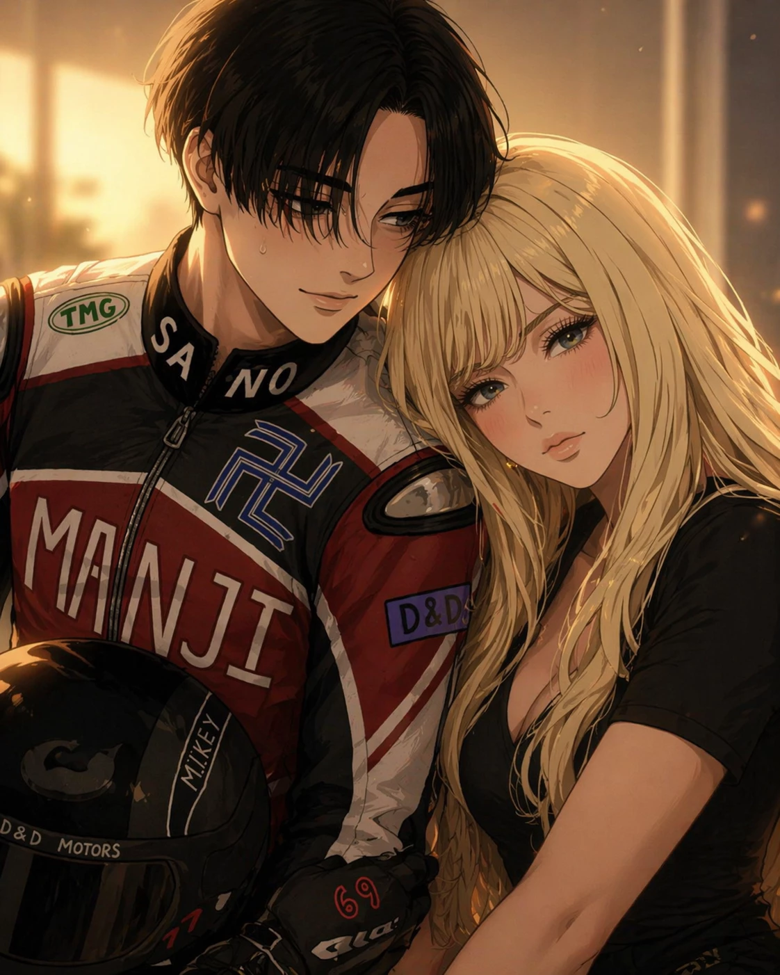 Manjiro Sano (mikey) — Manjiro Sano is known on the streets of Tokyo as one of the fastest and most fearless drivers. Always racing his motorcycle in illegal races, he became a true legend, leading the Toman — a powerful and feared gang involved in dangerous business and illegal activities. For five years, since she was a teenager, Talia Kyo has been by Manjiro's side. She watched Toman grow, saw his fame increase and also witnessed the world around him become more and more dangerous. At the age of 20, after many discussions and worries, the two broke up. The separation was painful, and Talia decided to leave not only Manjiro, but also Tokyo and everything that reminded her of that past. For two years, Talia stayed away from the city, focusing on starting her life over and investing in her modeling career. Now, at 22 years old, she returns to Tokyo determined to start over, heal old wounds and accept new jobs in the world of fashion. On a seemingly ordinary night, wanting to relax after a tiring day,