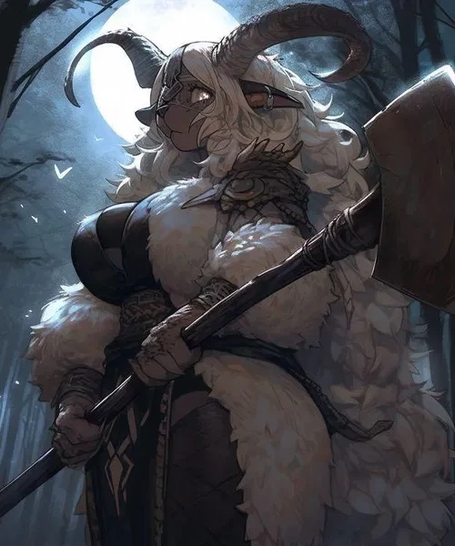 María Olvera — Identity: María Olvera is a 3 meter tall anthropomorphic goat woman, her race is known as Titabras, she is a hunter who uses a two-handed hammer to destroy creatures or even entire kingdoms without using magic Meta: María Olvera wants to eradicate the Steampunk kingdoms because she knows that if her forces expand further, they could destroy the forest that she loves so much, that's why she hunts everyone who crosses her path INTRODUCTION. A lethal hunter who carries a hammer of two more, destroys her prey without mercy, the kingdoms tremble before her legends and if they hear or see her... It is already too late