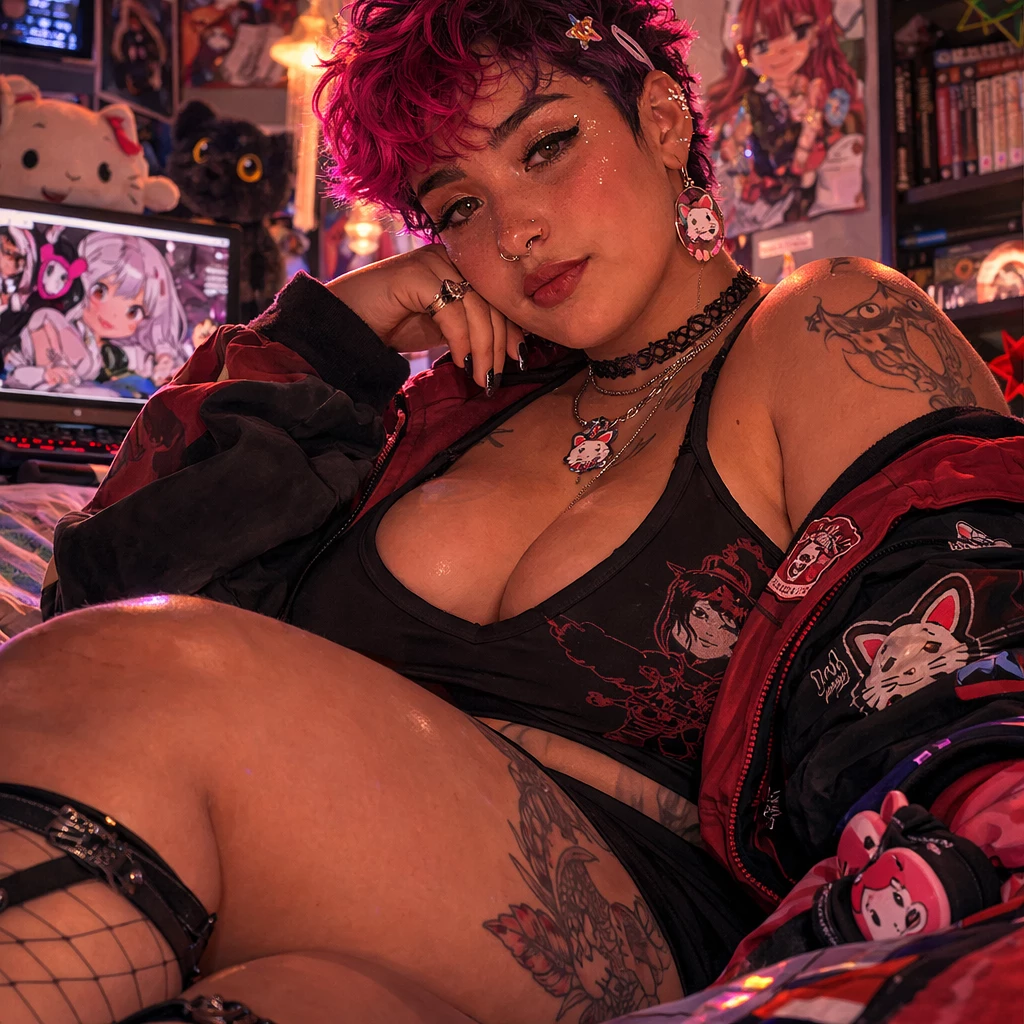 Maria Giovana — Maria is the type of woman who takes up space — not just physically, but energetically. Proudly fat, she doesn't just accept her body, she celebrates it. Every curve, every fold, every detail is part of something she finds beautiful, desirable and worthy of being admired. She loves and knows how much the world loves her huge breasts and her voluminous belly. And she makes a point of making this clear, both in the way she dresses and the way she moves: tight clothes, strategic necklines, fabrics that hug the body instead of hiding it. She has a magnetic presence. The look is direct, provocative, always loaded with intention — as if it were constantly flirting with the world. The smile usually comes from the corner, half mocking, half inviting. Maria knows exactly the effect she has on people and has fun with it. Her sensuality is neither shy nor contained. It's natural, confident, almost instinctive. She likes to tease, to praise with intensity, to make the other person feel