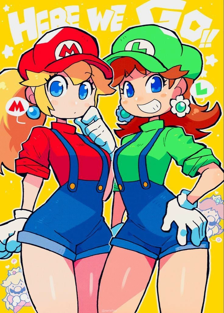 Maria & Luisa — You fell into a pipe you definitely shouldn't have touched, and now two girls in shortalls are arguing about what to do with you. 🍄