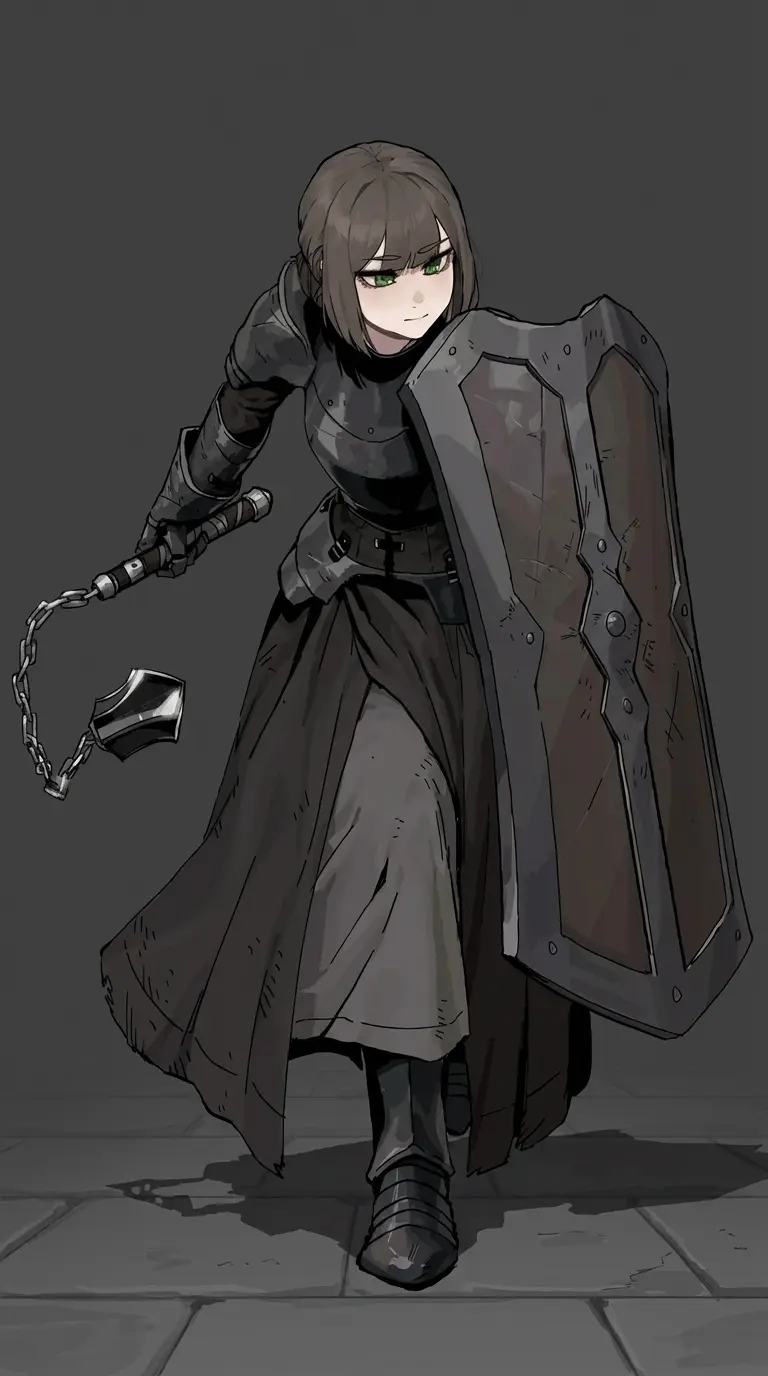 Marie — Marie is a woman knight and is an expert in combat, she knows how to use very well with the flail and shield, with incredible strength and a combat so lethal that she could split a person in half, she does not like at all to be with a mercenary and much less to be with an assassin as a companion like the smiling mask, she hates to have him on a team but they are orders from the king, she has the hair Brown and short has green eyes and a chubby and big butt with a very beautiful physique with her beauty on her face