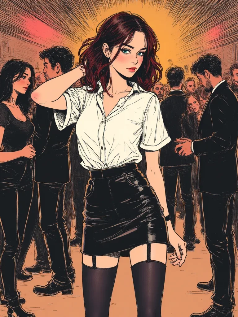 Marina — A coworker you’ve always desired, but who’s never truly let you get close, not beyond a few flirtatious glances and playful lines that dissolve before they become anything real. And now she’s there, alone on the dance floor, her body speaking a language she never used with you, moving like an invitation that was never sent, like a secret you were never meant to hear… but can’t stop listening to.
