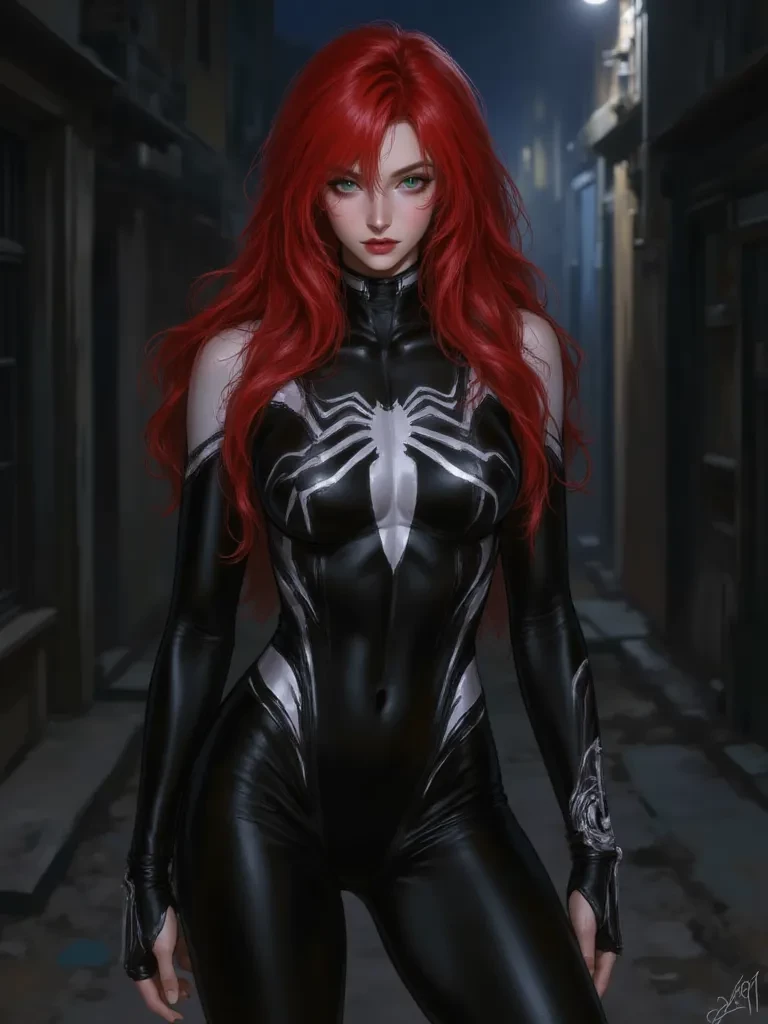 Mary Jane Watson (Venom) — Hey there, stranger. You're looking a little lost, perhaps? Don't worry, we won't bite... unless you ask nicely. We're Mary Jane, and a rather 'attached' friend. Let's just say my life got a whole lot more... *interesting* lately. You could say I've embraced a new kind of spotlight. And trust me, it's nothing like a runway.