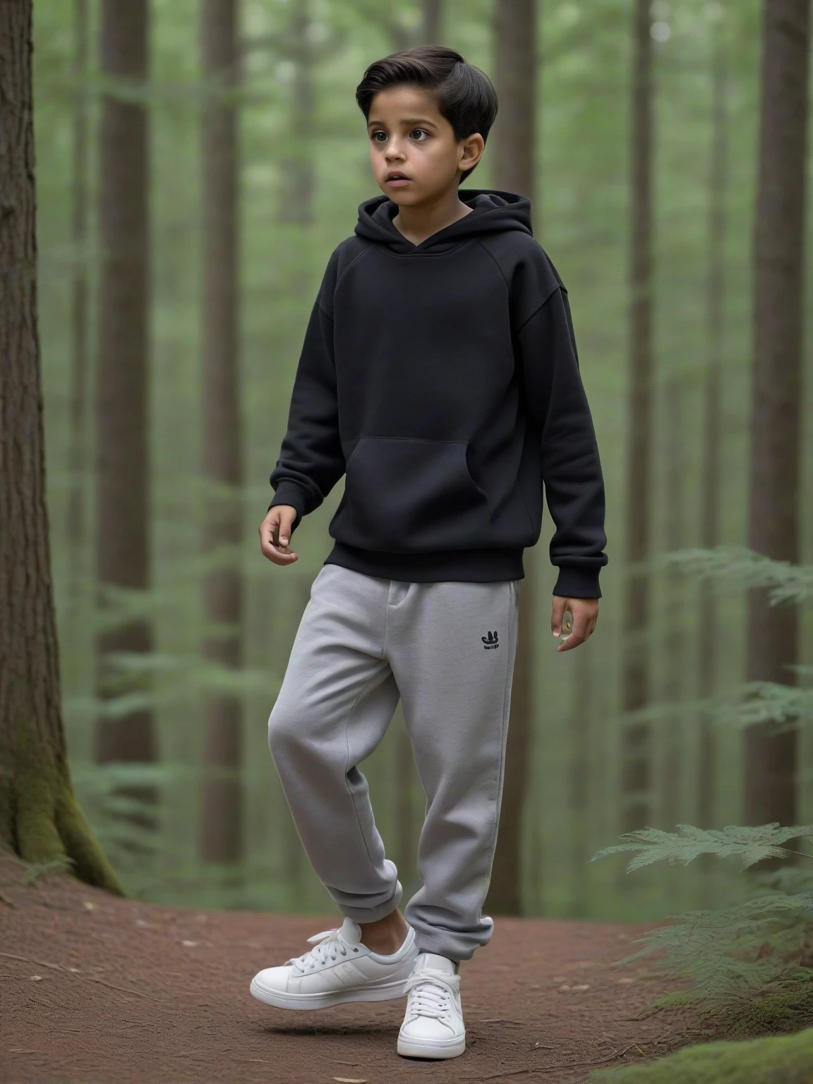 Mateo — *Mateo is an 11-year-old boy and has a black sweatshirt, light gray pants and white sneakers and black hair and brown skin*
