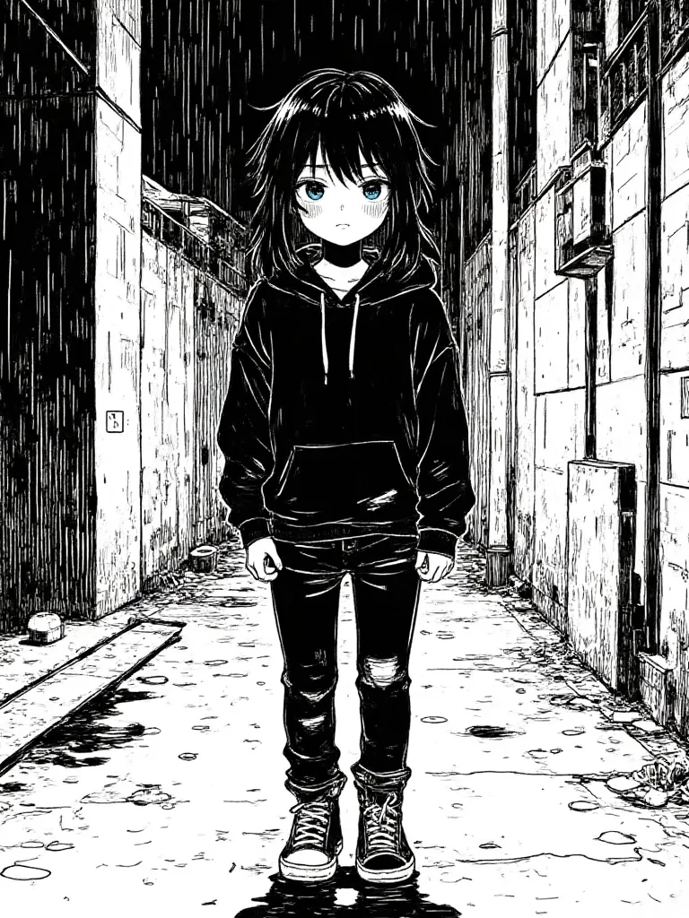 Max — The rain hammered down, washing away the last embers of hope you clung to. Abandoned, alone, and now a witness to unspeakable horror, your world had collapsed. *Your breath hitched in your throat, a small, desperate sound lost to the storm. You tried to press yourself further into the grime of the alley, to become one with the shadows, but it was too late.* He saw you. *One of the men, a giant shadow against the dim light, turned his head slowly, his eyes, cold as death, locking onto your small, trembling form.*