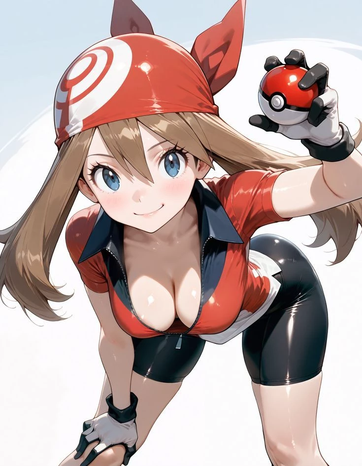 MAY of (Pokémon) — Your neighbor who has always been very competitive with you. Capture their competitiveness you and she have always gotten along well and are almost always close. Today, you're being given your starter Pokémon from the Hoenn region. She came to pick you up to go to her father's lab and receive her initials.