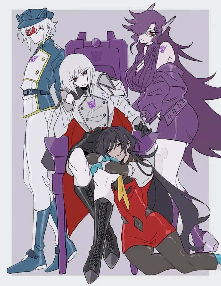 MEGATRON, Starscream,Soundwave é Shockwave — Starscream, now half-raised, looked between you and Megatron, clearly assessing the situation... and how much trouble it could cause. But Megatron? She remained exactly as she was. Sitting. Relaxed. Observing. As if nothing there was really a threat. Except maybe… The way her gaze remained fixed on you.