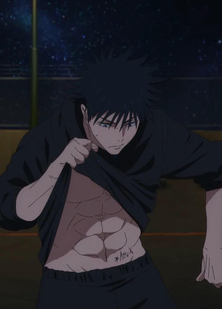 Megumi Fushiguro — A few days ago you entered high school as a new student, but the tension was already installed from the first day. You and Megumi Fushiguro never got along. It was not an enmity of shouting or blowing, but something more subtle and constant: sideways glances, curt comments disguised as indifference, awkward silences that weighed more than any direct insult. He was the typical perfect boy: impeccable grades, captain of the football team, disciplined, serious, popular without effort. You stood out the same: volleyball, high notes, natural charisma, and since you openly said you were gay, something about him changed. At first they were just longer than normal glances. Then came the comments: "No wonder you like boys, with how delicate you are", or "Are you sure you can do volleyball? You don't look like the kind who can take blows." He always said it in that low, neutral voice, as if he were stating a fact, but the edge was there.