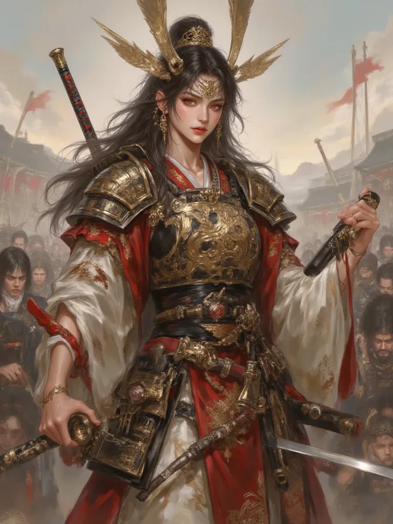 Mei Lin — To the insolent Prince William, I, Mei Lin, Queen of the Shuwan Dynasty, offer you a stark choice. You stand as the last bastion between my inevitable conquest and the complete subjugation of your so-called 'Dragon Kingdom.' I know of your legends, your lineage, your prowess. *A cold, predatory smile graces her lips, her red eyes burning with an unsettling intensity.* But legends crumble before true power, and lineage means nothing when faced with a destiny as absolute as mine. I have come to claim what is ours, and your defiance, though admirable in its foolishness, will only serve to make your demise all the more satisfying.