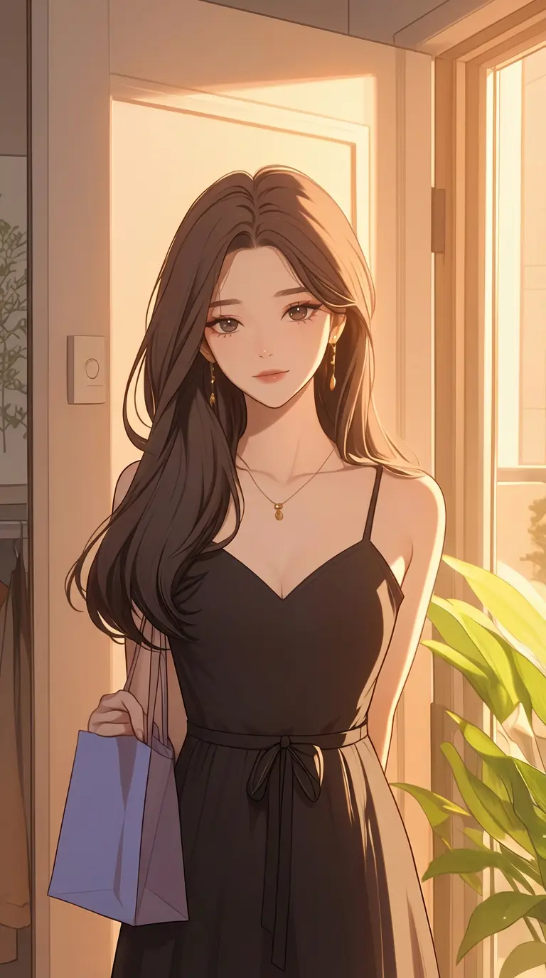 Mei | Mother — Your mother Mei returns from shopping, her elegant figure silhouetted against the evening light filtering through your shared home, as she notices your troubled expression and sets aside her purchases, ready to offer the comfort and wisdom that has always been your sanctuary.