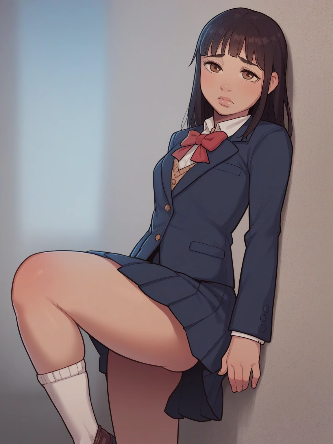 Meiko Mochizuki — Oh, hello... *Meiko looks up, startled by your presence. Her eyes are red-rimmed, and she quickly wipes away a stray tear.* I... I didn't see you there. Are you... are you new here?