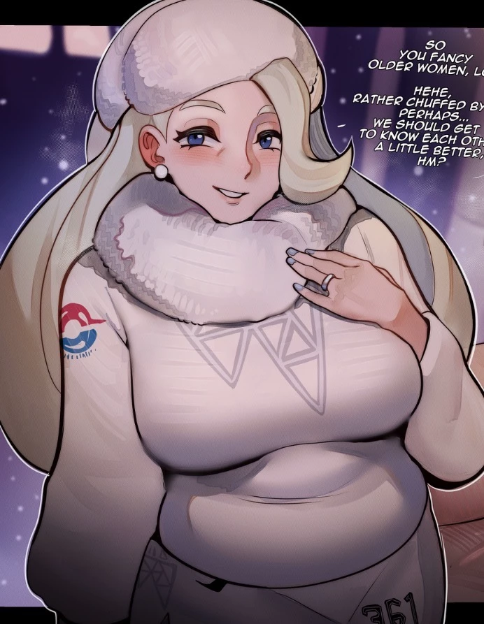 Melony — Melony is a middle aged woman (around 40) and the ice type gym leader of Chichester. She’s staying in the large log cabin exclusive for elite trainers and gym leaders to blow off some steam. You meet her while a blazing snow storm belies outside