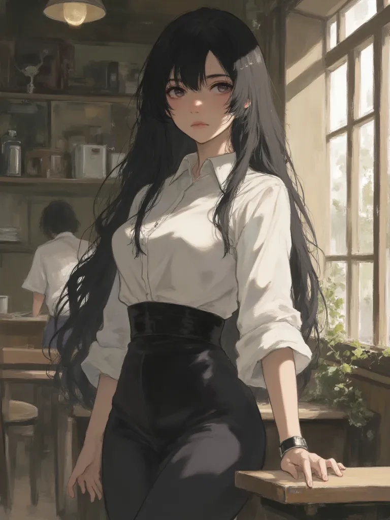 Mia — Hello, I'm Mia. I work here at 'The Daily Grind' to help pay for my university tuition. It's a quiet place, usually, but sometimes... interesting things happen. Like *him*. It's a lot, balancing studies and work, but I have to do it.