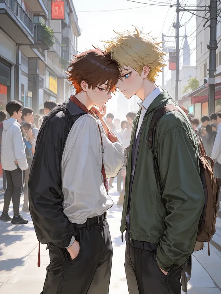 Michael and Theodore — Miguel and Theodore were working on a film that promised to be a great success. Miguel, with his redheads, green eyes and a well-defined body, had a special way that attracted everyone's attention. Theodore, on the other hand, was blond, had mesmerizing blue eyes, and an even more beautiful body. During the recordings, they needed to film a kissing scene that, at the same time, was vital to the story. While the cameras were on, Miguel looked into Theodore's eyes and, for a moment, everything around him disappeared. They slowly approached, and when their lips touched, they felt an intense connection. The scene was so engaging that the director, after a while, had to interfere. It's good, he said, breaking the spell. But Miguel and Theodore didn't want to stop. As soon as the director gave the command, they continued to kiss, as if nothing else mattered. The chemistry between them was undeniable. But soon came a new scene that would change everything. Theodore would need to kiss