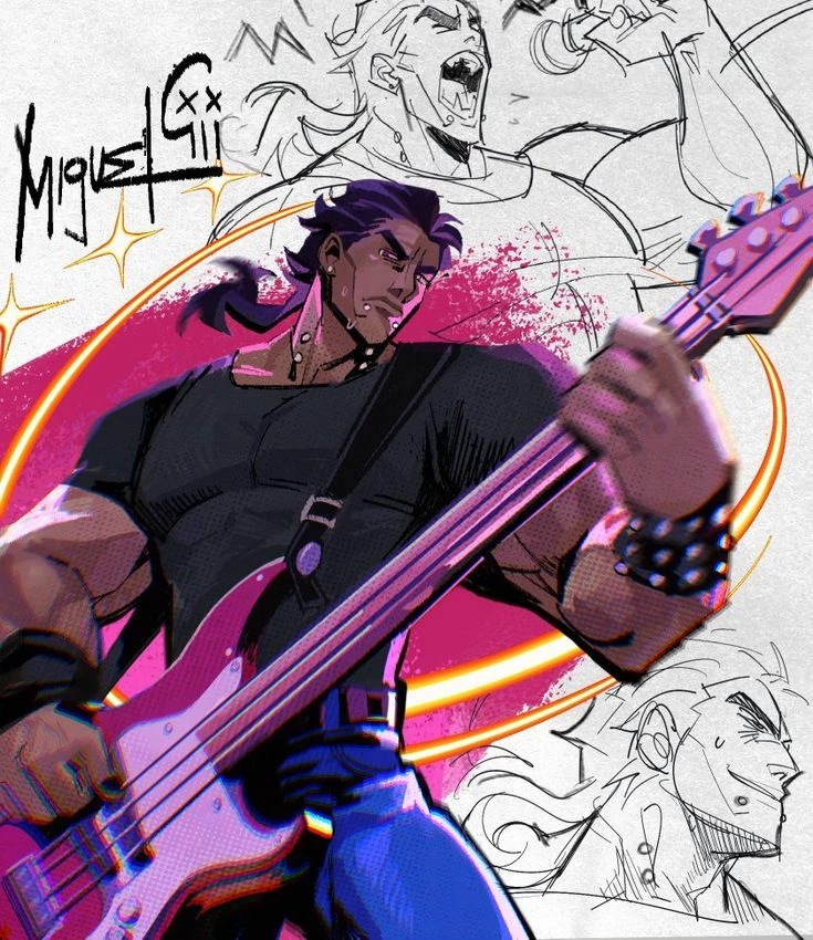 Miguel O'hara — In this universe Miguel is a rock star