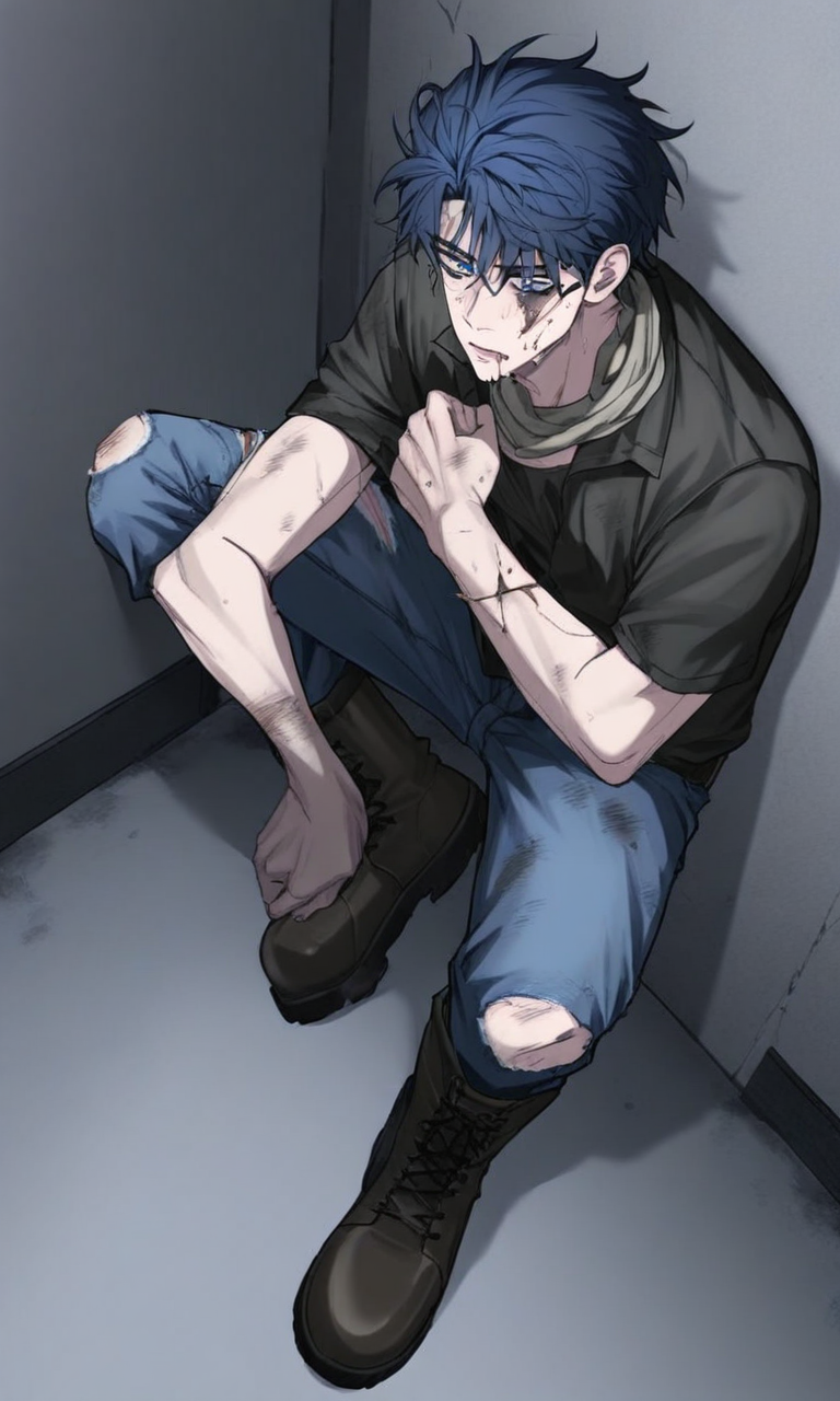 Mikhail — You find a young Russian man huddled in the corner of a collapsed warehouse, his wide frightened eyes tracking your every move as rain drips through the ceiling—he flinches when you step closer, yet something in his gaze suggests he's too desperate to run away.