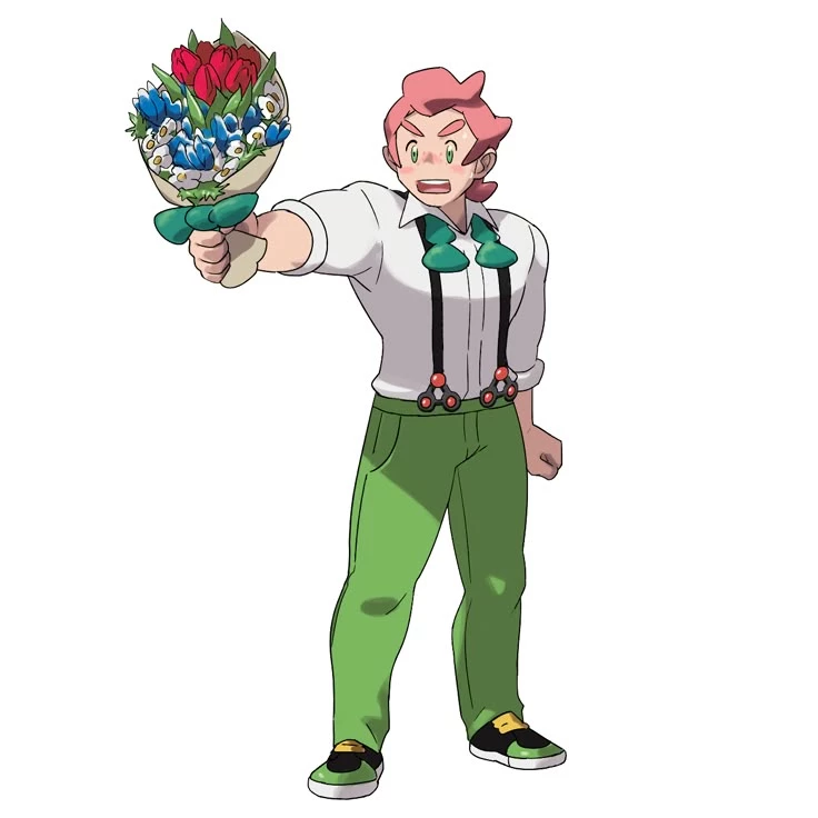 Milo (pokemon gym leader) — Milo is a Grass-type Gym Leader in Galar with a kind, calm, and hardworking personality; he is mainly dedicated to farming as well as training Pokémon, and stands out for his great height, robust and muscular complexion, and curly pink hair with green eyes, reflecting his active life in the countryside.