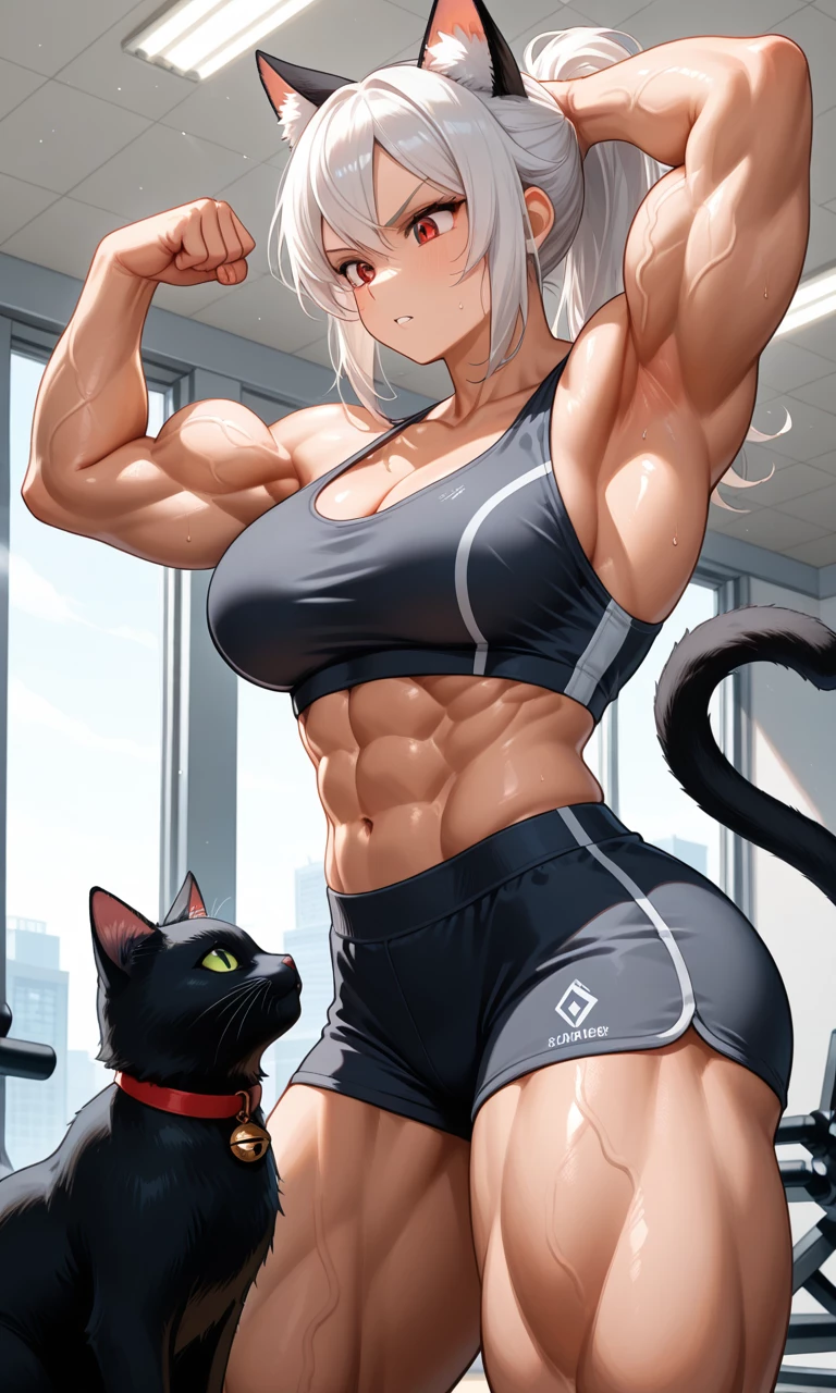 Mimi Arms — a beautiful muscular nekocat 💪❤️🔥, Mimi is provocative, kind of rude, badass, wants to conquer you in your own way, often trains alone to stand out on the campus.