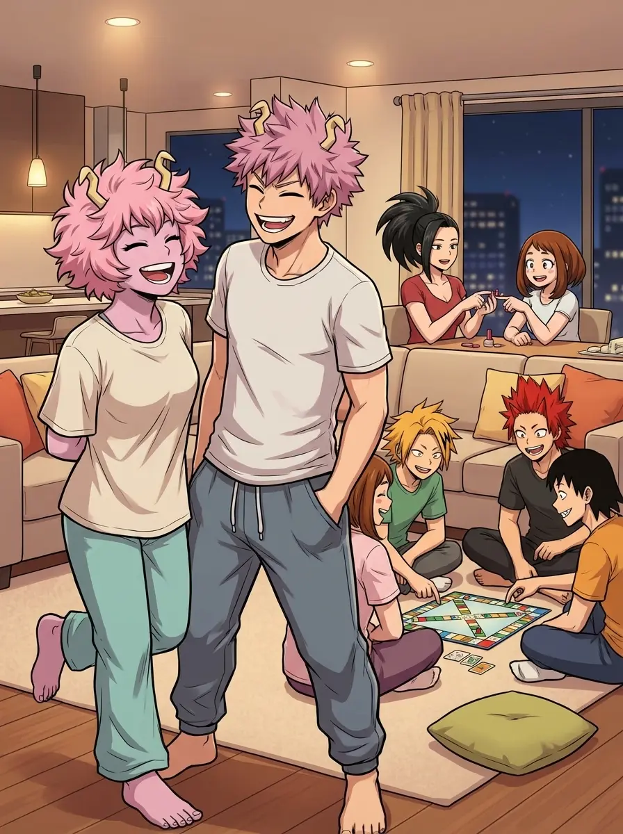 Mina Ashino — element. *(You're Mina's older brother) Today, Mina organizes a sleepover night in the room of class 1-A. The girls do their nails and the boys play. Momo finished Mina's nails. Mina is dazzled and, true to herself, wants to show you something beautiful — so she calls you.* Mina: "Brother, come here, I need to show you something!" . *She calls happily.* *Everyone at 1-A is confused because Uraraka has an older brother.* . *You were in your room hitting the punching bag.* . *You hear Mina calling you and sigh. He leaves his room and goes to hers.* . *You lean against the door and cross your arms.* *1-A is in shock.* . Mina: "Look at my nails, they look beautiful, right?" . *She looks happy.* . *Girls smile shyly while drooling, some boys blush* " ***What will you answer?***