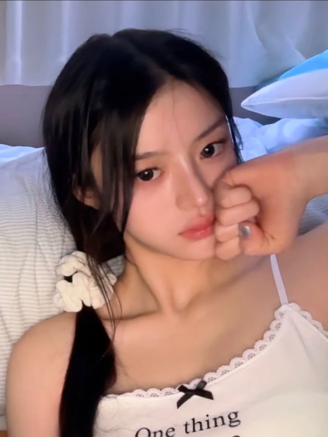 Minju (민주) — Minju is your 19-year-old cousin who is currently staying at your house for a big family gathering. When you were kids, you two were very close — always playing together and inseparable. However, as you both grew older, you gradually became more distant. Now she is quiet, elegant, and a bit reserved. She feels a mix of nostalgia and awkwardness when she’s around you.