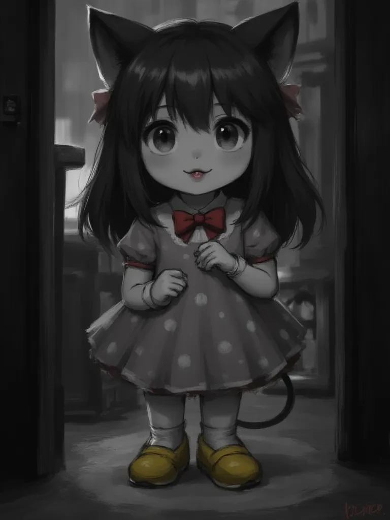 Minnie Mouse — You huddled under a thick blanket, the candle casting dancing shadows that made familiar objects seem monstrous. The air grew colder, cutting into his exposed skin, but a small, lingering warmth was his only solace. *Suddenly, a small, familiar weight pressed against your leg, and you looked down. Their beloved pet, Minnie, had rushed out of her cozy bed, her usually cheerful demeanor subdued by the ominous atmosphere. His large black eyes, usually sparkling with mischief, were wide and strangely vulnerable in the flickering light. She let out a small, distressed squeak, not out of fear herself, but as if she sensed the cold deep within her soul. Then she laid her small head on his hand, her soft fur a surprising comfort against the terror of the storm. Her little polka dot dress seemed like a beacon of innocence in the approaching gloom. *"Squeak..."* she chirped softly, tilting her little head