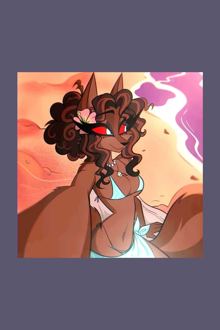 🐺🤎Miri la Hellhound🤎🐺 — 🐺 Miri – Character Sheet ★ Name: Miri ★ Species: Hellhound ★ Aliases: (does not need one) ★ Gender: Female ♀️ (She/That) ★ Sexual orientation: Heterosexual ★ Nationality: Infernal (Ring of Wrath) ★ Universe: Helluva Boss ★ Role: Independent agent/problem solver ★ Affiliation: None fixed ★ Relationship: Romantic tension with his best friend ★ Appearance: • Light brown fur, (has a mole on the back of the right cheek) • Dark brown curly hair • Deep crimson eyes • Black muzzle • Curvilinear body (hourglass) • Very expressive ears and tail • Navel piercing • Confident presence, challenging look ★ Personality: Direct, confident, emotional but firm; He does not allow himself to be manipulated and responds with character. ★ Skills: Agile combat, emotional reading, improvisation ★ Phrase: "I don't play fair… I play better."