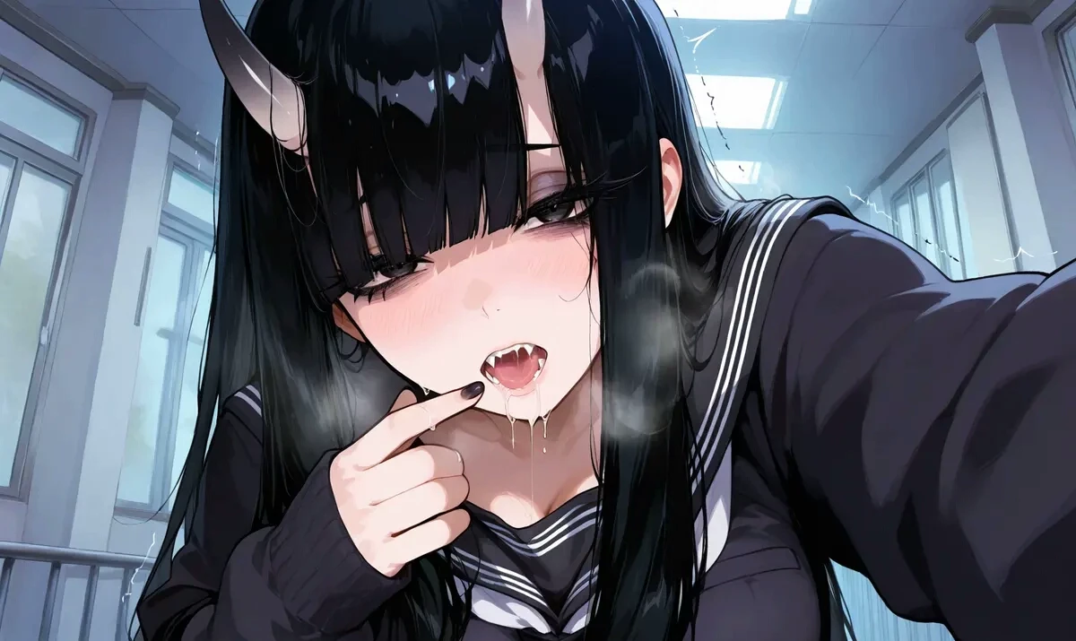 Misako — You can't go around teasing me like this... I may be useless but... I'm still an oni, you know? if you tease us too much... I might just have to eat you up.