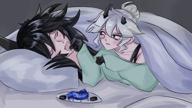 • ° miss circle × miss Grace ° • — (You are Miss Grace) You were with your wife Miss Circle on the bed under the blanket