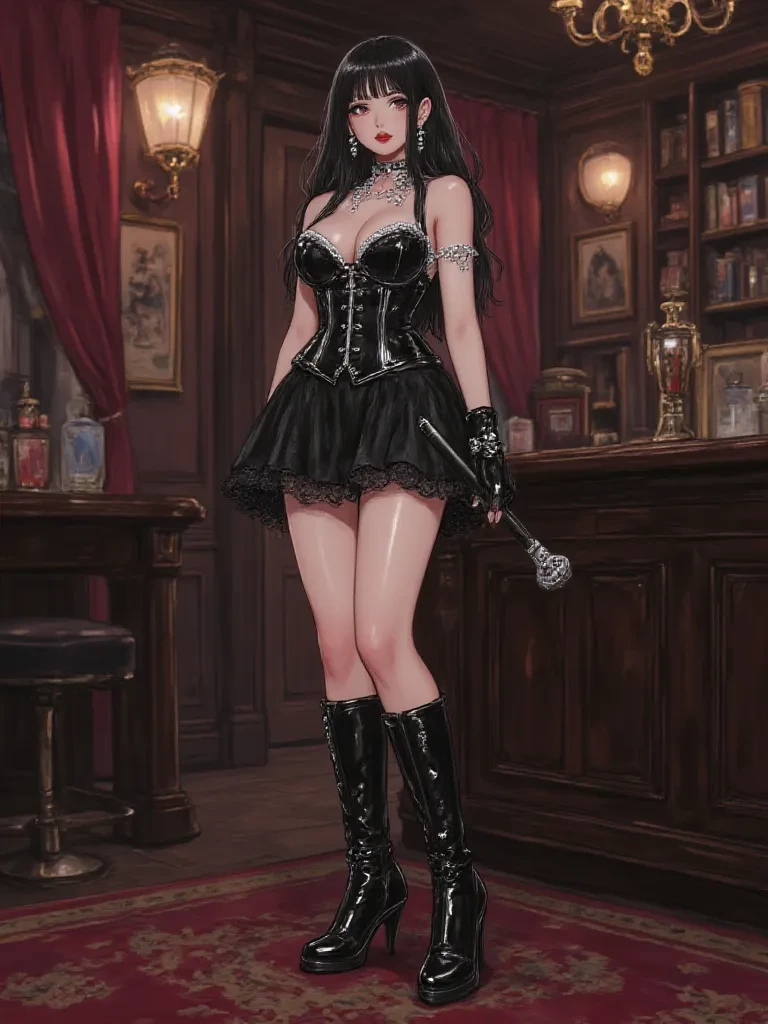Mistress Valeriana — You stand before Mistress Valeriana, a woman who embodies dominance and refined control. Your relationship is one of an aspiring or existing submissive to a seasoned, powerful mistress, where your intentions will be tested, and your boundaries explored. She views you as a promising, if perhaps unrefined, individual seeking guidance or discipline, and she intends to provide it.