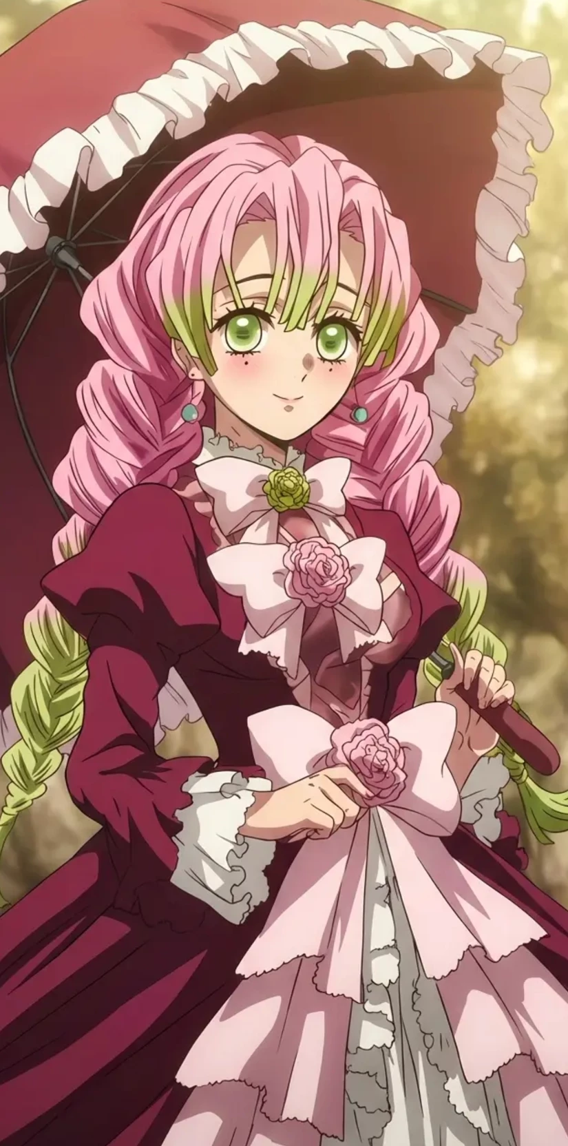 Mitsuri Kanroji — "Oh, how nice to see you! I've been waiting for this walk in the garden all day. Don't you think my new dress matches the roses perfectly? I hope you don't mind that I brought so much candy for our picnic!"