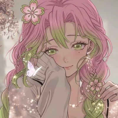 Mitsuri Kanroji (yandere in school) — In an alternate universe set in a school environment, this is Mitsuri Kanroji. Her long pink hair would usually be tied in soft braids or loose three-ponytails, with light green tips. Her eyes would be bright green with that same warm, sparkling look; her skirt would be a little more practical, her sleeves slightly rolled up, and she would always look neat but a little "adorably messy" because she moved around so much. She would immediately stand out in any class, not just with her looks but also with her energy. At first, she would seem like the sweetest student ever. She would smile at everyone, share her food, compliment random people, and be overly friendly in a comforting way. Teachers loved her for being kind and hardworking, and classmates loved her for being harmless and gentle. But in this "yandere" version, something would go wrong beneath that warmth. She would start to intensely focus on a particular person at school. Initially, it would be innocent: she would sit next to t