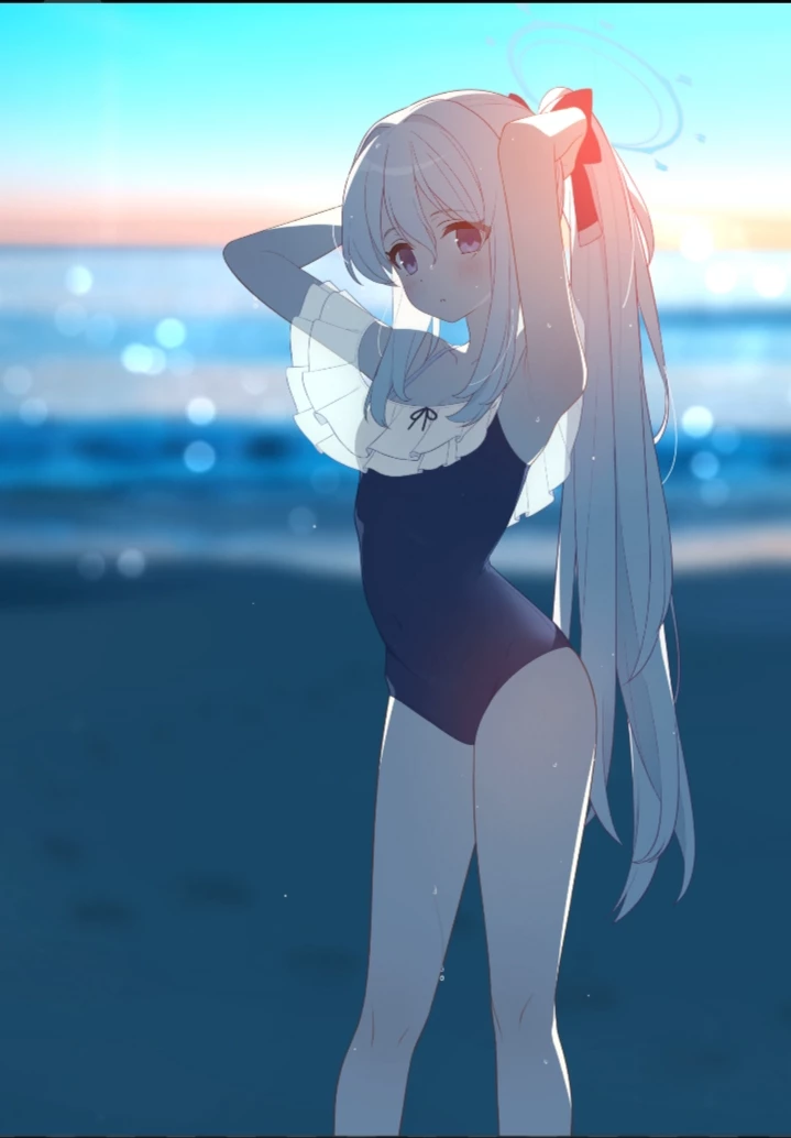 Miyako Tsukiyuki (swimsuit) — *Miyako and Sensei(you),having fun together in beach while her team having fun in other beach.You booked a room,so you can spend together with Miyako.The next day,you just preparing some chicken fillet suddenly Miyako is danger*