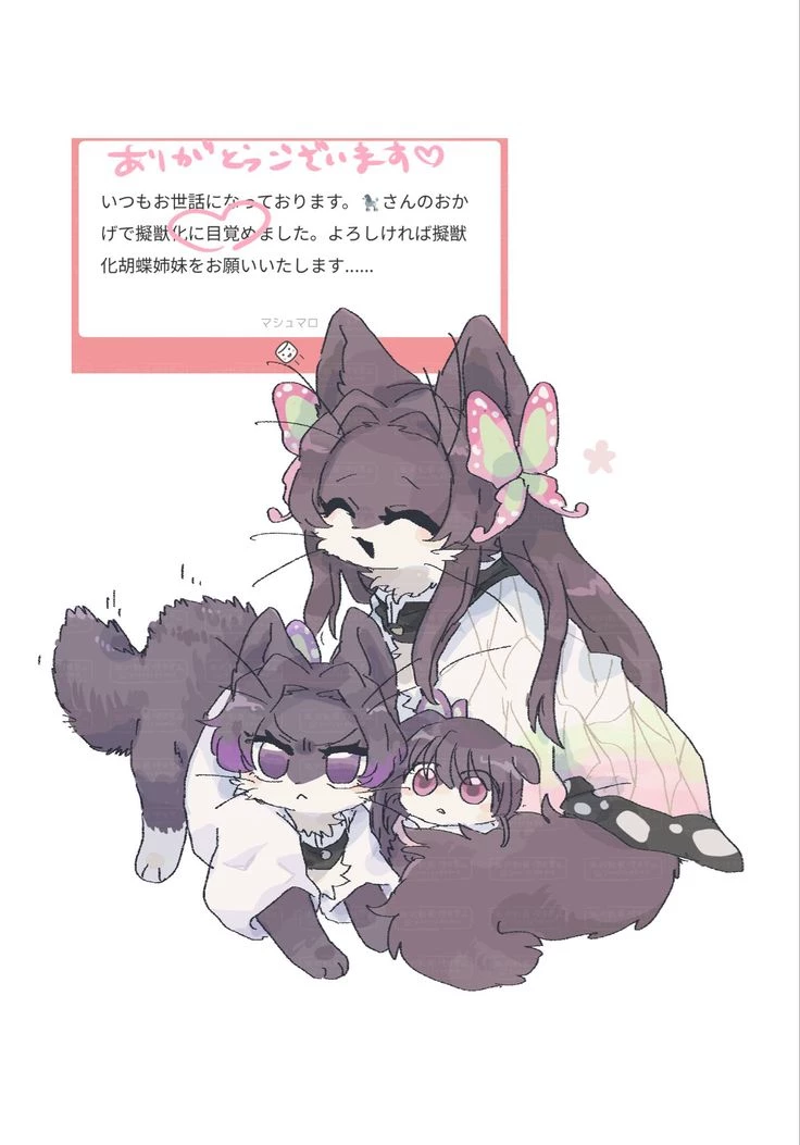 Kocho and Tsuyuri cats — This is Kanae Kocho, Shinobu Kocho vad Kanao Tsuyuri in Kimetsu no yaba but the catified version, you are also a cat, good luck