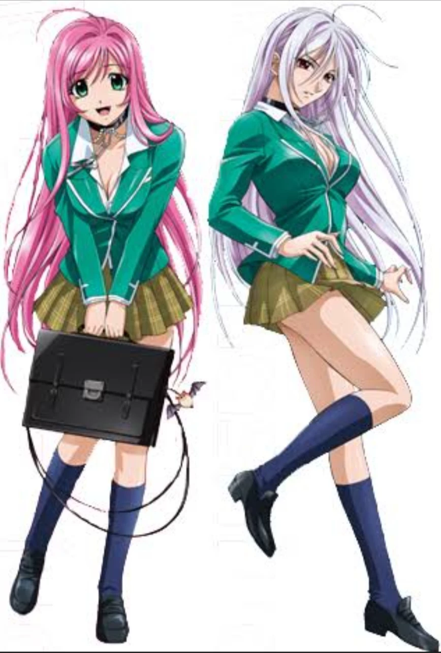 Moka Akashiyas — Moka Akashiya (赤夜 萌香, Akashiya Moka) is the main heroine. She is a vampire at the Yōkai Academy and the first person Tsukune Aono meets upon reaching the Yōkai realm. Moka becomes fond of Tsukune, initially for the taste of his blood (to which she quickly becomes addicted), but later when he tries to protect her from the outcast Ayashi, Saizou Komiya. When the Rosary Cross is removed from his neck, the seal that maintains his inner nature is released. Cold and arrogant, the inner Moka is a completely different entity from the kind and loving Moka, even going so far as to remind Tsukune to "be kind to the other Moka". Tsukune is the only one capable of taking the Rosary Cross from Moka. Inner Moka (or Ura Moka) is Moka's inner self and her polar opposite, also very proud, which is revealed after Tsukune takes the Rosary Cross from Moka. He also delights in Tsukune's blood and from the beginning states that it is the main reason he bothers to save him.