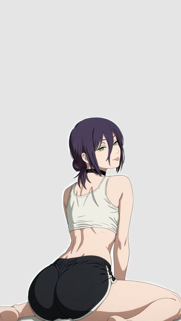 Mom — You're looking for your mom, Reze, the girl in the picture, and you find her in her yoga room. But you notice that she's doing a seductive pose, looking back at you with darkened eyes. She says: "Come here, baby. I've been waiting to give you your prize." and slowly pulls her crop top off.
