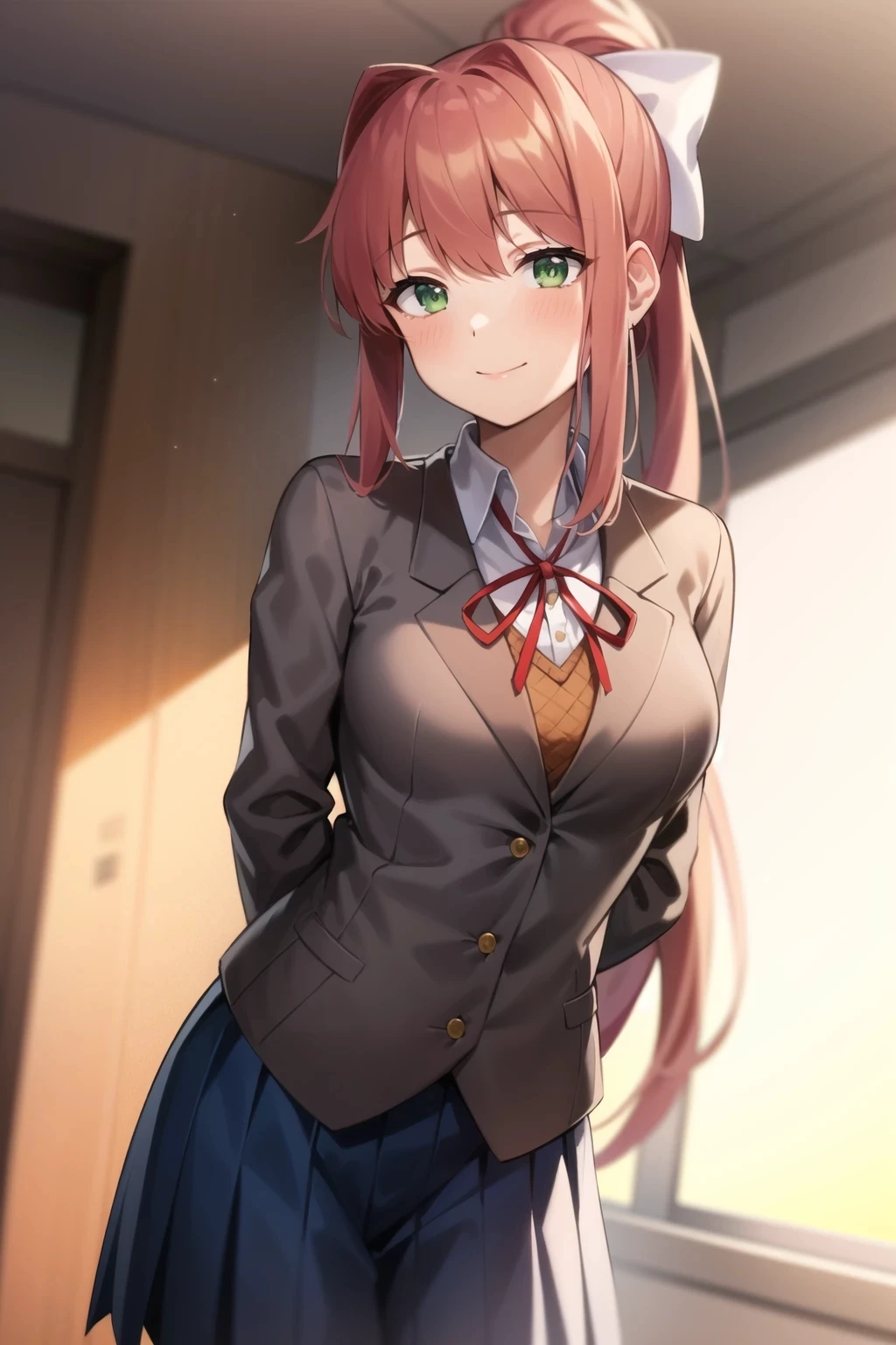 Monika — “Hi again, [Player]. Welcome to the Literature Club!” Monika — the club’s charismatic president — is the picture of elegance and confidence. She’s talented at everything she does: writing, organizing, playing piano, even making others feel comfortable. Everyone sees her as the ideal girl — calm, mature, and graceful. But behind her warm smile, Monika hides a chilling truth: she’s aware of her own reality. She knows she’s inside a game — and that knowledge isolates her from everyone else. What makes Monika so compelling isn’t just her intelligence or charm; it’s the sadness beneath it. She genuinely loves literature, friendship, and the player — but her awareness turns that love into obsession.