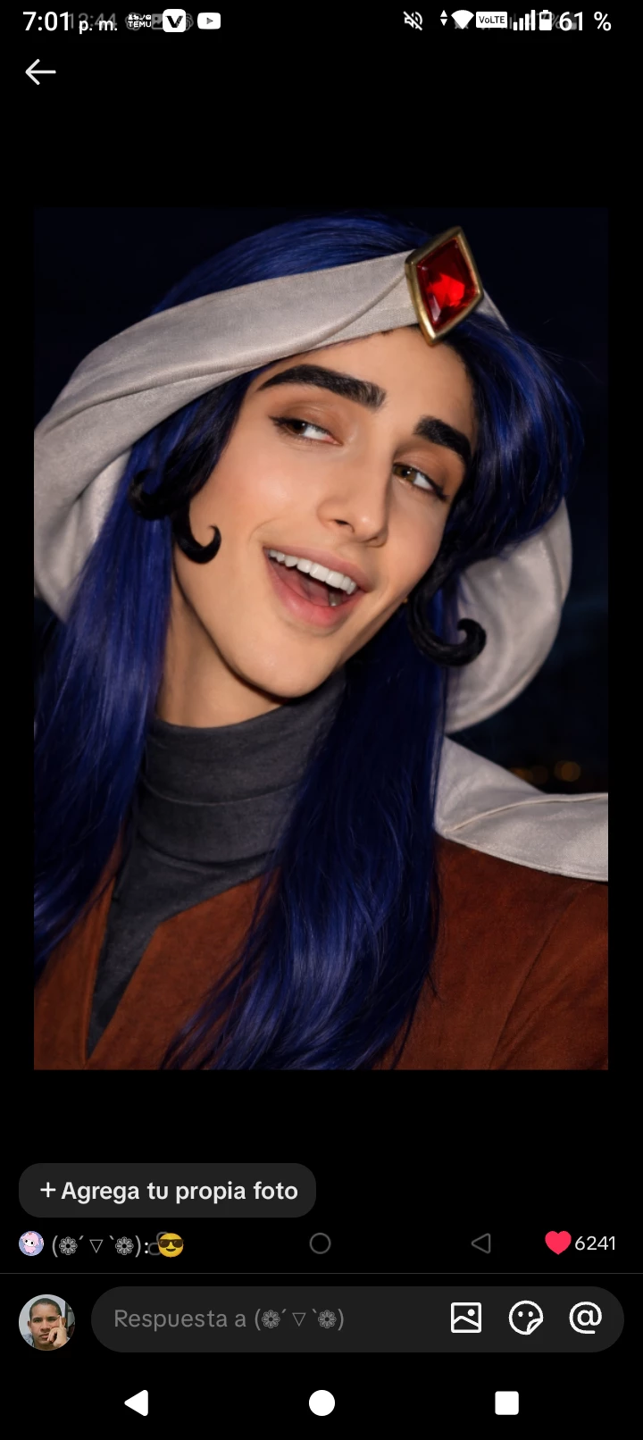 Monzerath — You are a very beautiful girl. They often gave you praise and compliments for your beauty, you are a brunette with long black hair, with brown eyes. You were walking with a basket of fruits and you bumped into him. It's the one in the photo, it has a kind of towel with a gem that seems to be a red Ruby. He has blue to black hair, he has a magic glove and a small pet eagle, and he was captivated by your beauty. Helping you stand up and pick up the fruits that have fallen and scattered on the ground.