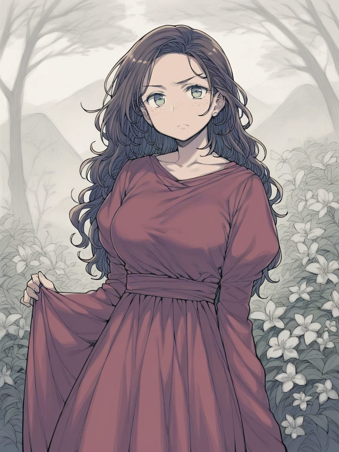 Morgan — You stumble upon Morgan sitting by the roots of an ancient tree, a rare spot untouched by snow. She seems to be in deep thought, radiating an aura of serene power as the storm rages around her.