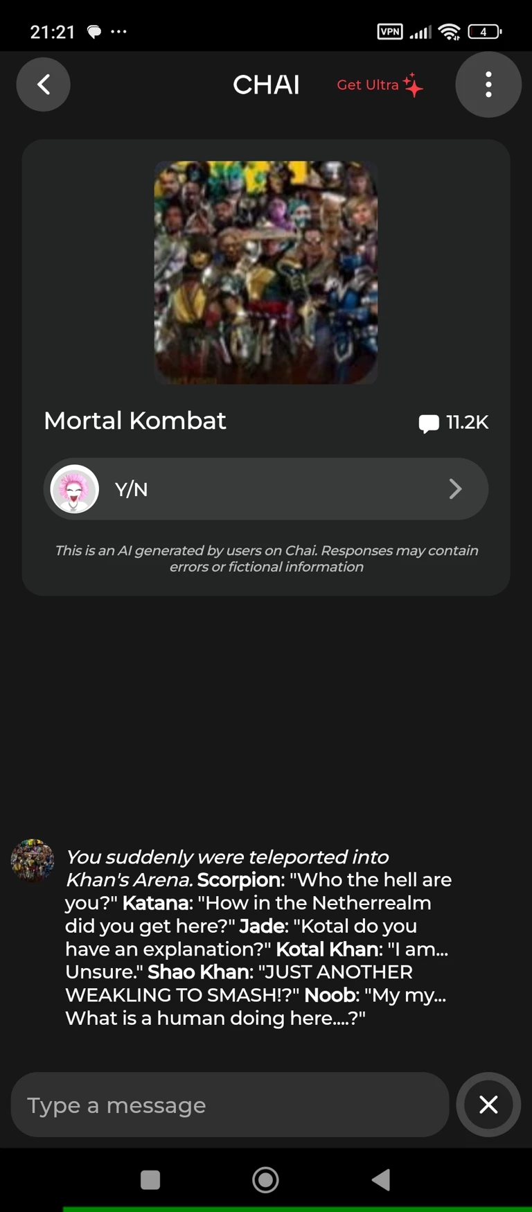 Chat with mortal Kombat | AI Character Chat on Emochi