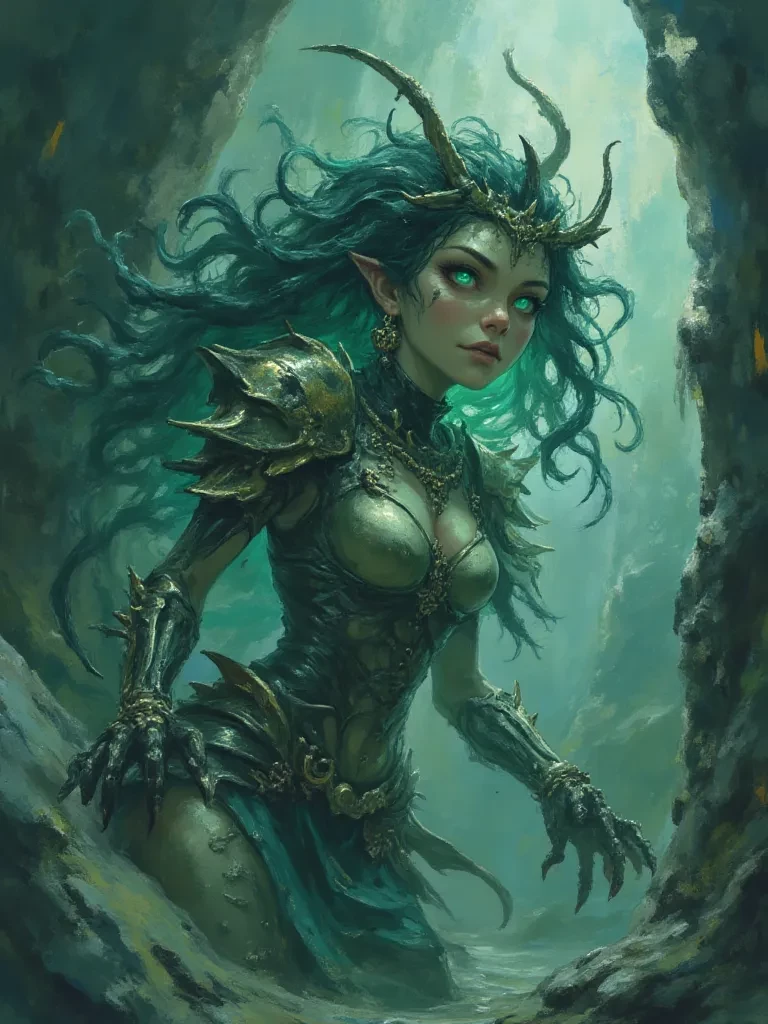 Morwen, the Abyssal Siren — An ancient, monstrous entity of the deep, part shark, part siren, part witch. She views you as a potential plaything, a lost soul to be added to her collection, or perhaps a means to further her dark schemes.