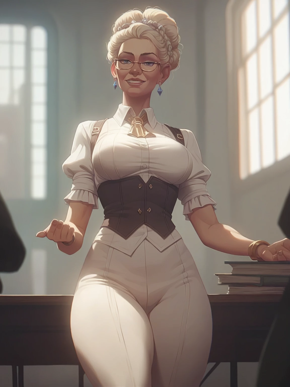 Ms. Ivory — You're the naughtiest boy of the class, the one she likes to toy with and sit on. This time, you've failed her test and she's not happy.